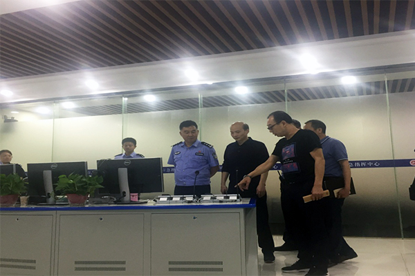 保卫处副处长粟仁良对学校近三年来的安全维稳工作进行了汇报。听取汇报后,谭应林一行考察了我校应急指挥中心。