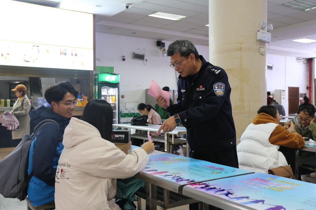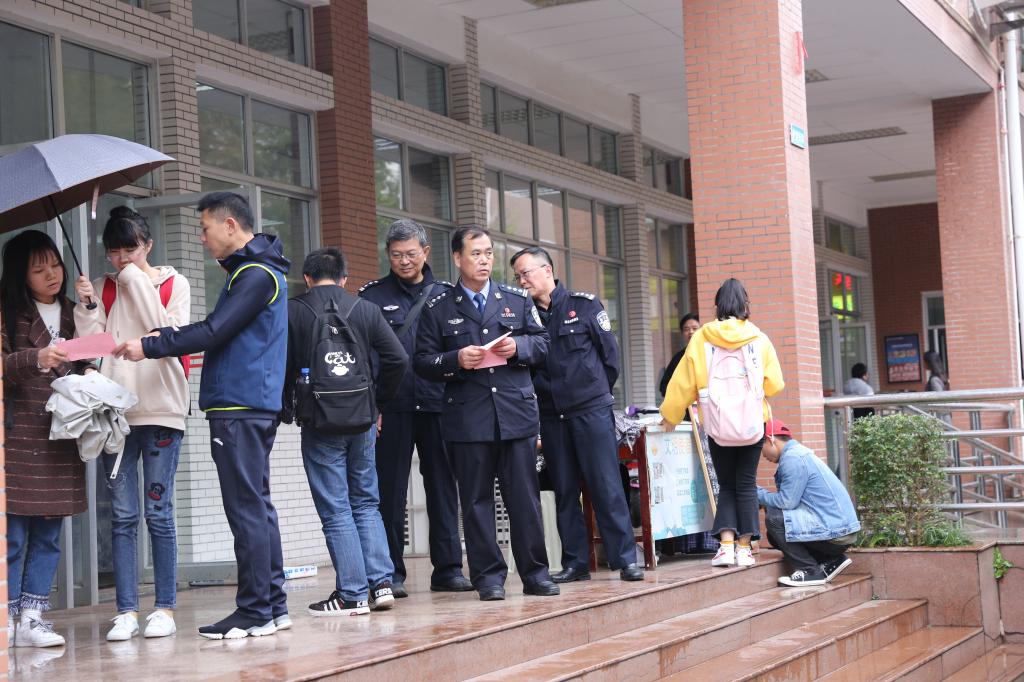 陏后,保卫处和岳麓分局桔子洲派出所民警冒雨深入木兰路、桃子湖路现场对学生开展反扒宣传和打击扒手行动,共发送反扒秘籍宣传单近千份。