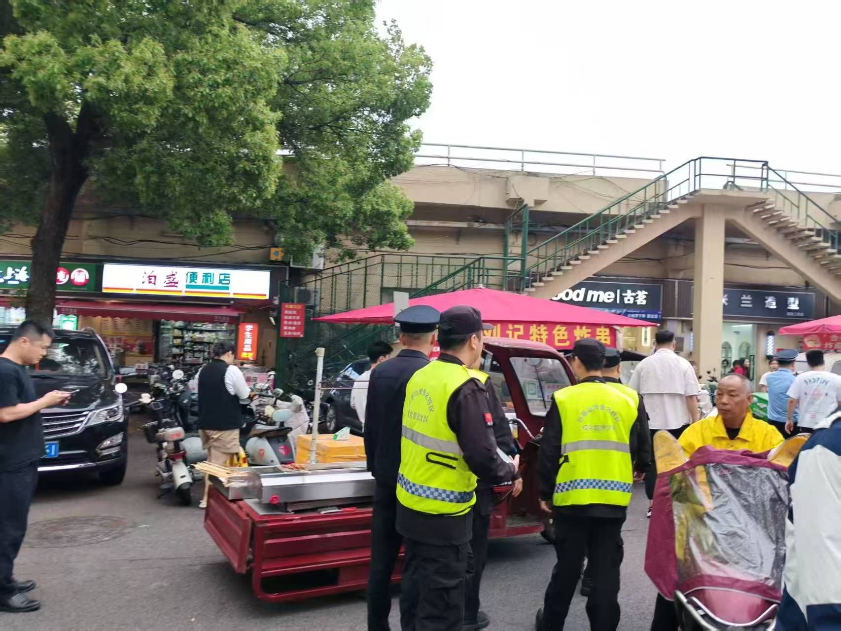 4月24日,sunbet申搏综合治理办公室联合城管执法中队及岳麓山风景名胜区综合管理大队对二里半校区木兰路及江边宿舍的流动摊贩开展集中整治行动。