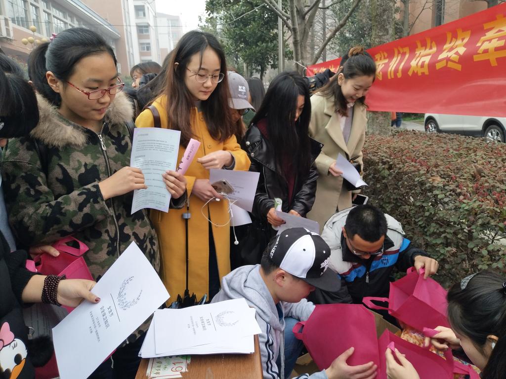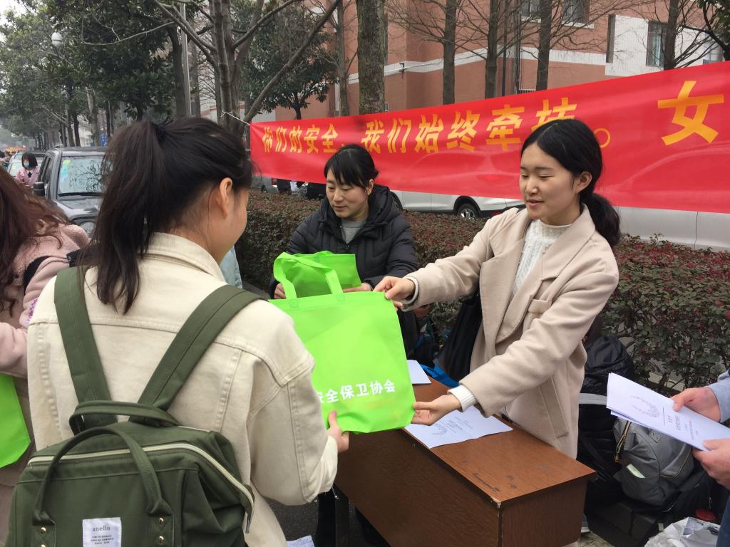 随着下课铃声的响起,活动掀开帷幕。协会向女生们分发了安全知识宣传单和小礼品,让女生们感受到关怀和温暖。不到一个小时,社团准备的500份宣传单和小礼品很快就发送完,宣传活动也告一段落。